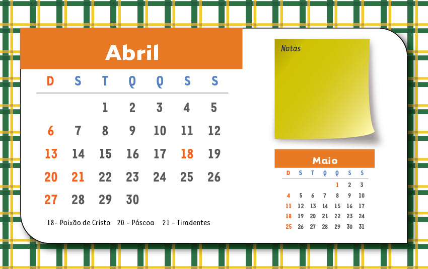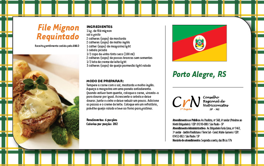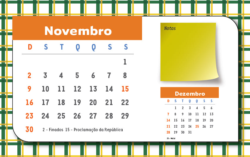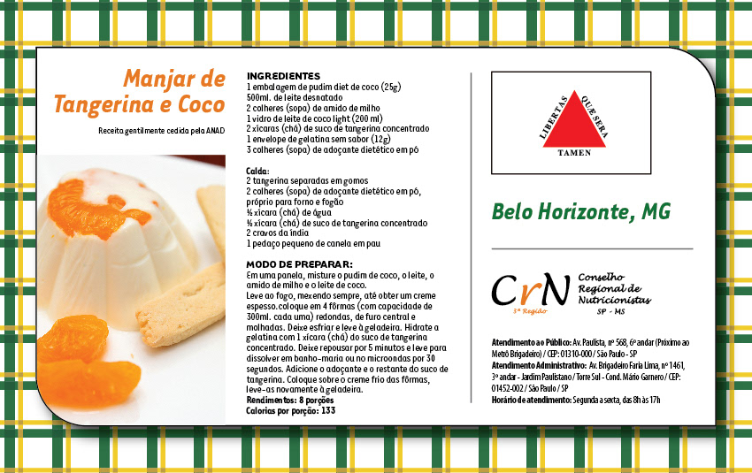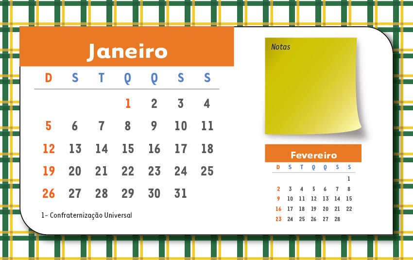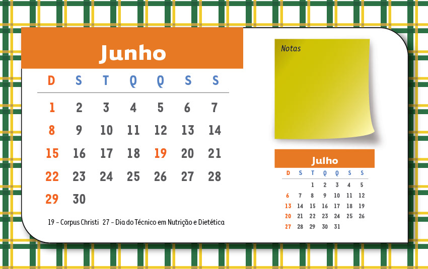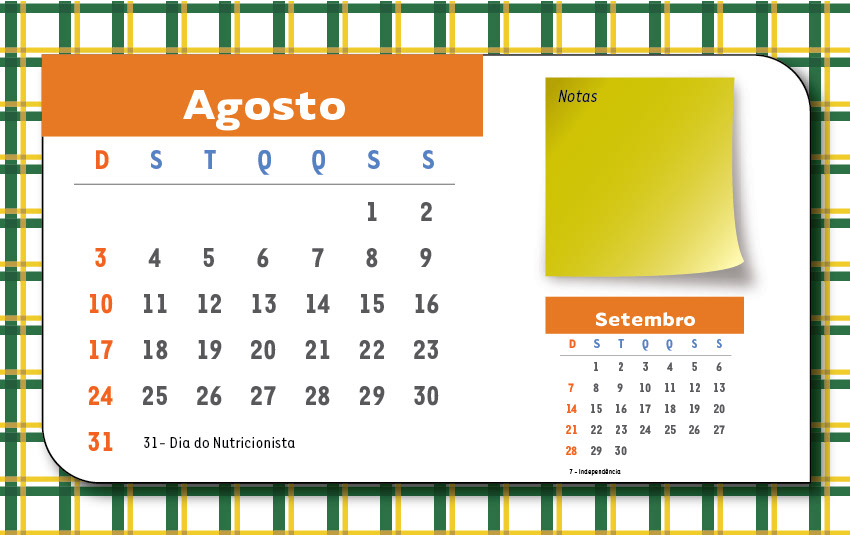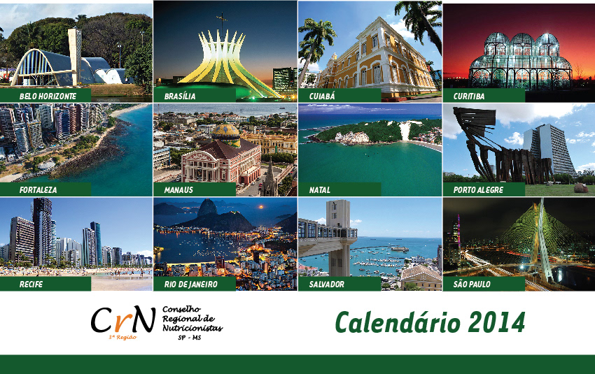 Calendário de Mesa para profissionais de nutrição localizados em São Paulo e Mato Grosso do Sul, Brasil.